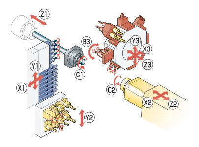 - C axis control as standard on main and sub spindle